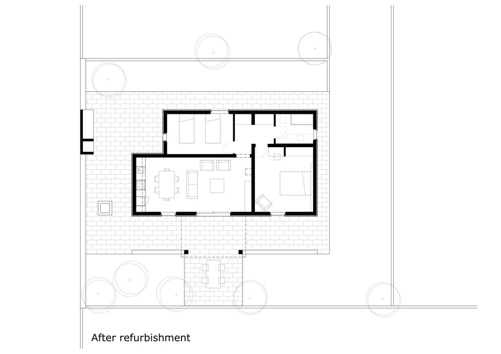 En el interior, se realizó una transformación total, redistribuyendo los espacios de forma más diáfana y confortable, obteniendo espacios más luminosos y conectados con el exterior.