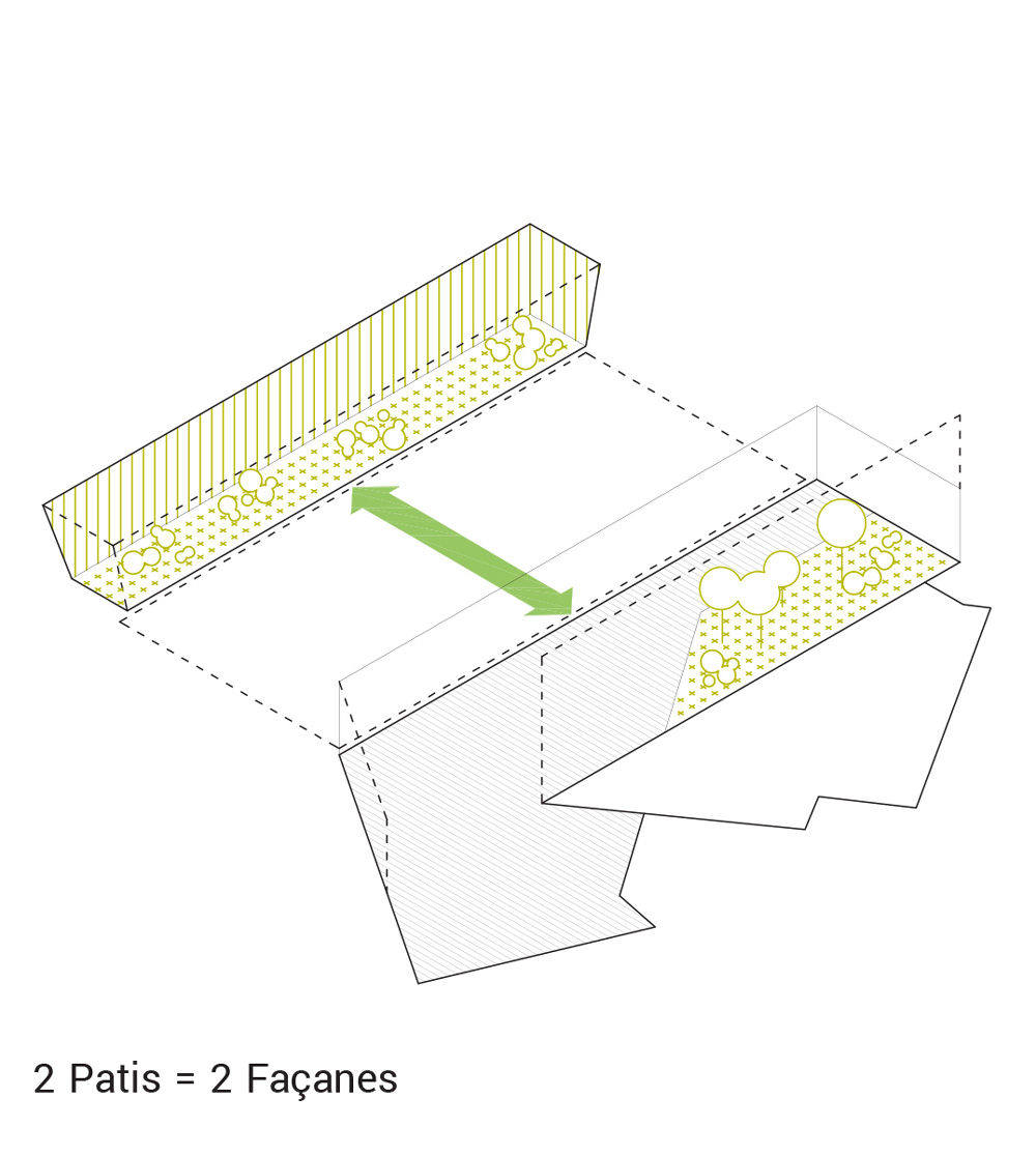 Nuestra propuesta no renunciar a esta complejidad, sino que la incorpora a su diseño como una forma de integración en el contexto. La llanura de la plaza se transforma poco a poco en escala para enlazarse de una manera casi natural con el pasaje del sur. De esta manera elimina en el sur la barrera entre la Plaza y el pasaje. Pasaje y Plaza quedan integrados y tienen continuidad el uno en el otro.