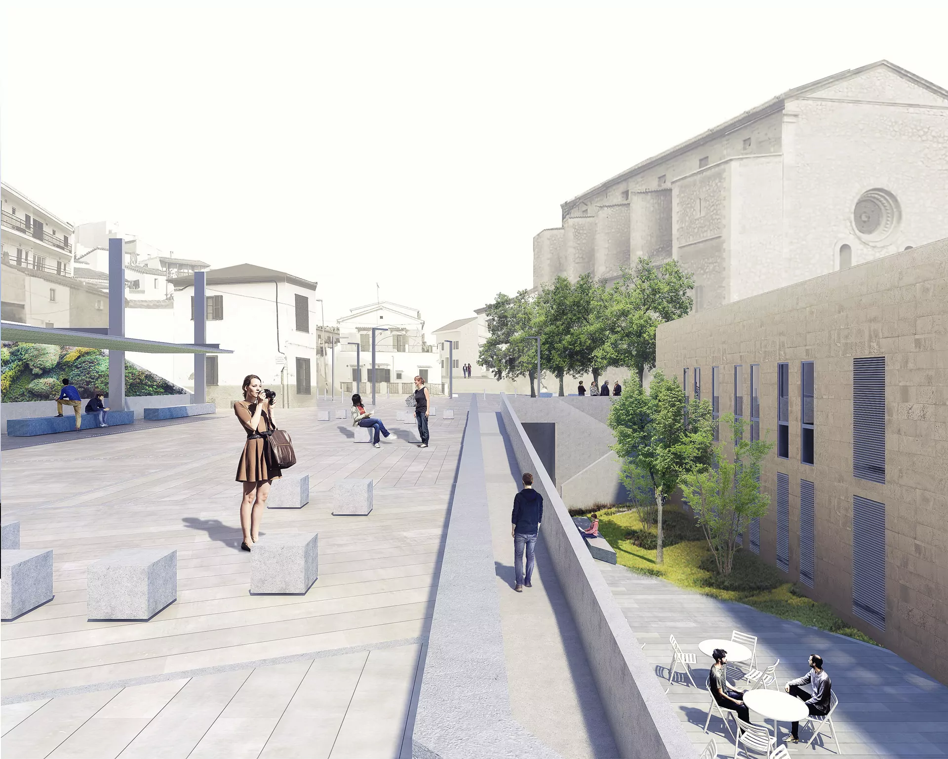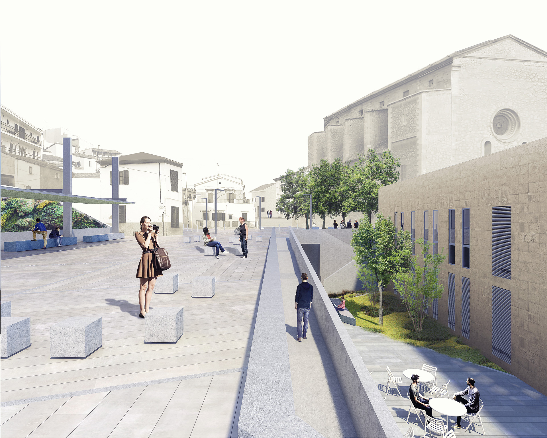 1_Patrimonio histórico. Génova es un barrio con su propia historia y desarrollo, ubicado en los límites de Palma. Debido a su historia, en el casco antiguo que rodea la Plaza del proyecto hay numerosos edificios y elementos con valor patrimonial que deben tenerse en cuenta. A estos hechos se considera que la propuesta debe basarse en la integración con su entorno. Con tal objetivo se han utilizado recursos de diseño como el uso de materiales neutros o adaptación a la topografía existente.