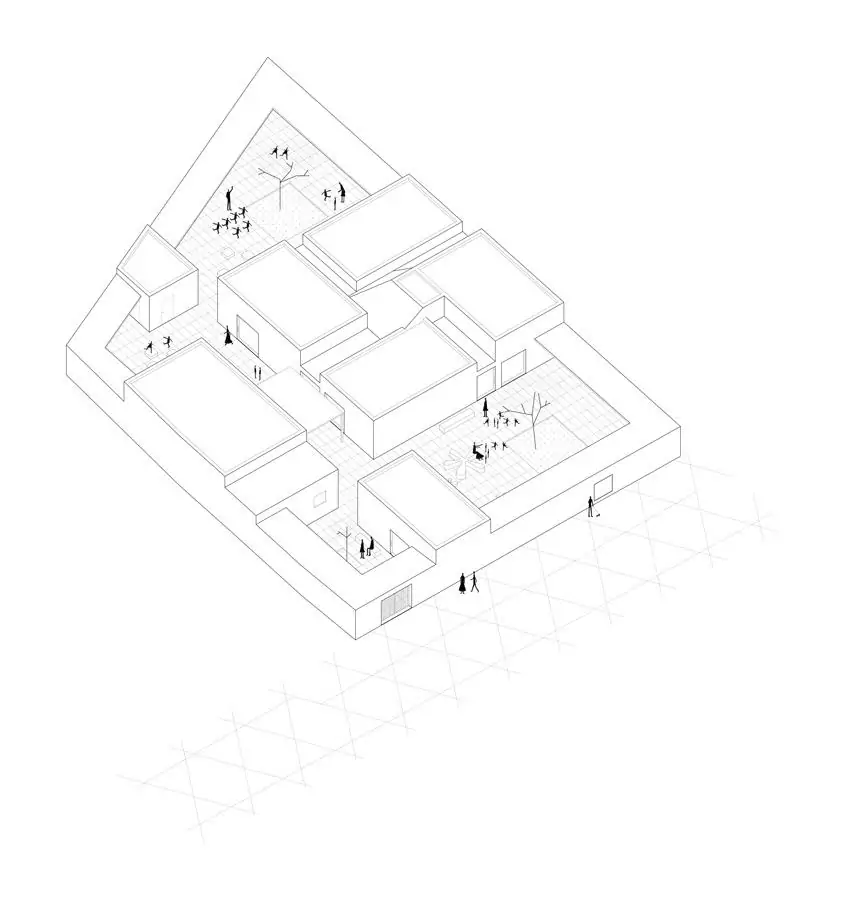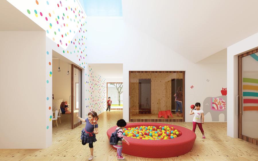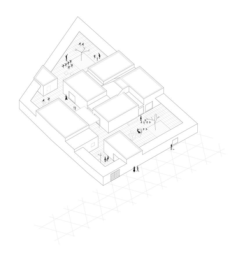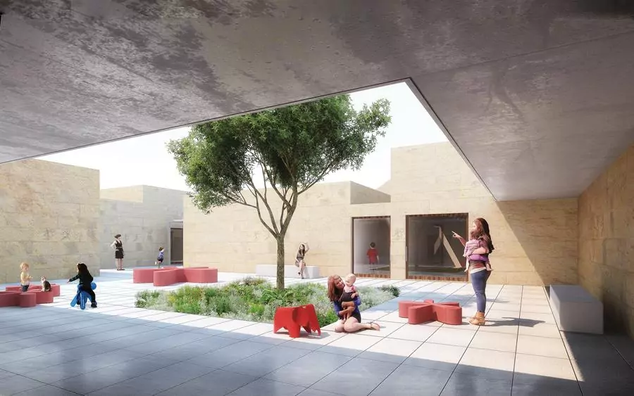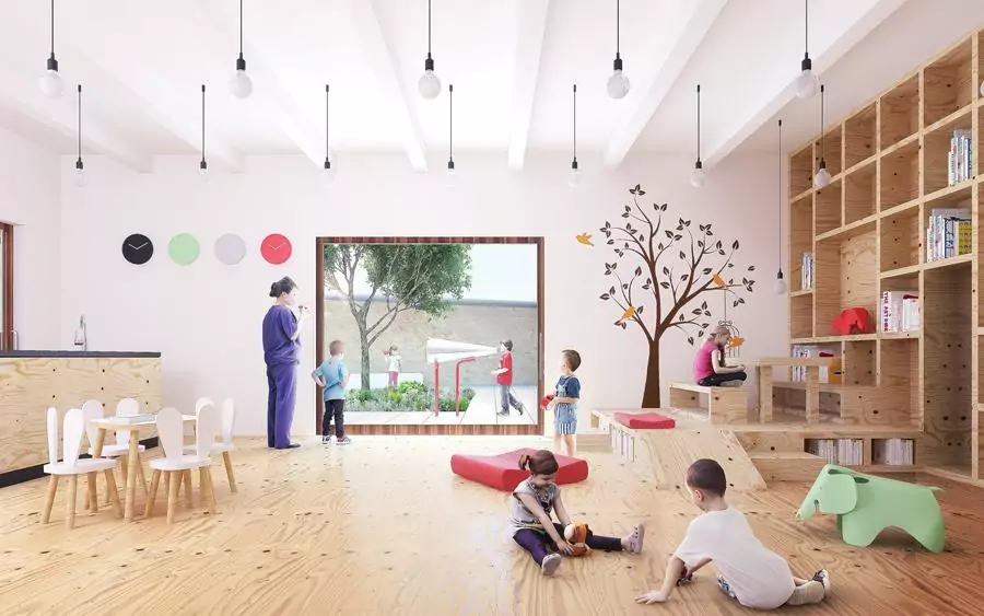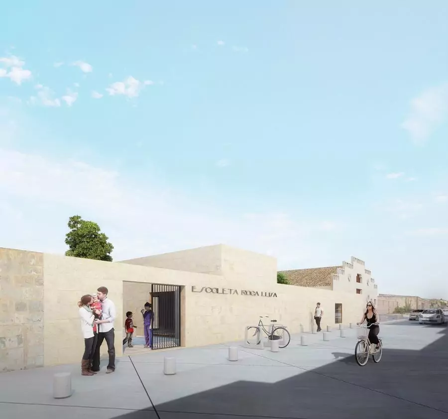 Como en la arquitectura urbana de los pueblos de Mallorca: con una fachada a la calle y otra al patio trasero, creamos un espacio a escala de sus habitantes, con diferentes edificios y espacios exteriores; formando un pequeño pueblo donde los niños encontrarán un ambiente que les inspirará a aprender de primera mano sobre la infancia.