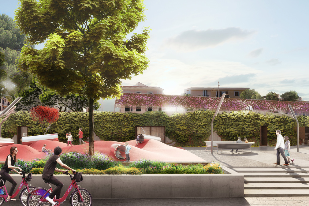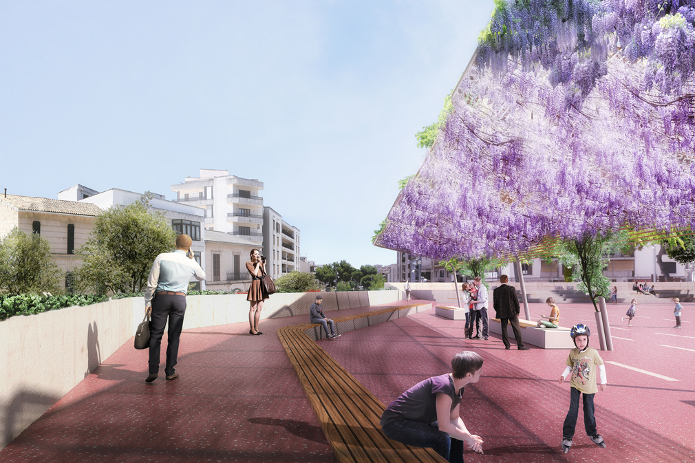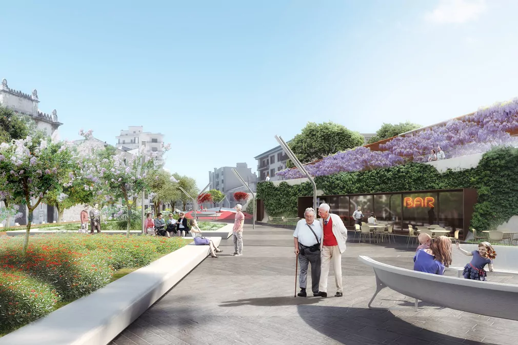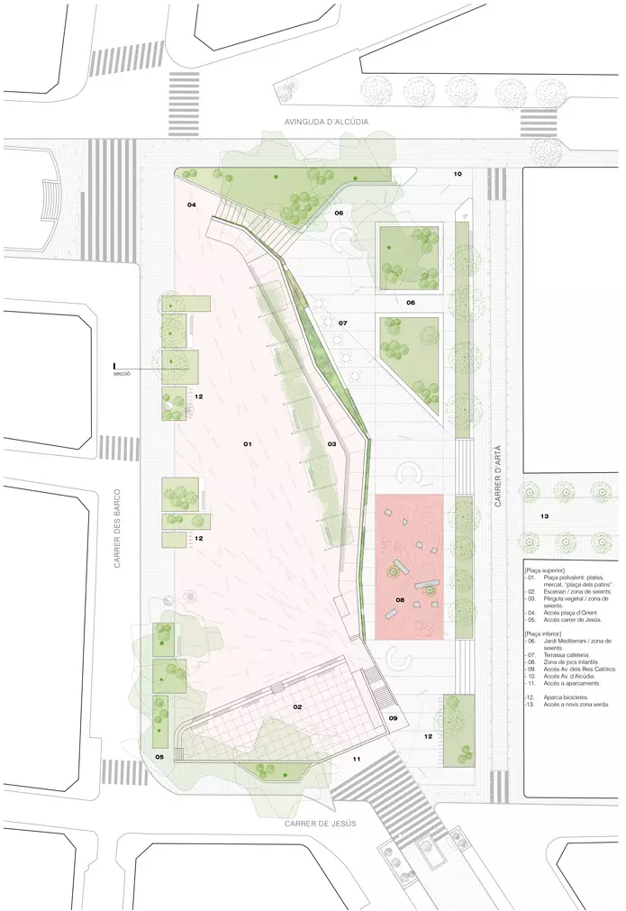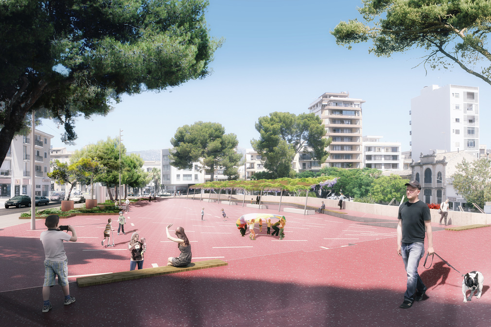 Además de los requisitos lógicos de este proyecto de renovación, con nuestra propuesta pretendemos recuperar el ambiente de la «plaza de los pinos» y la «plaza de los patines»: un espacio verde con abundante vegetación, con cómodas zonas de descanso a la sombra de los grandes pinos y una amplia zona donde se pueda patinar o disfrutar de una noche de verbena.