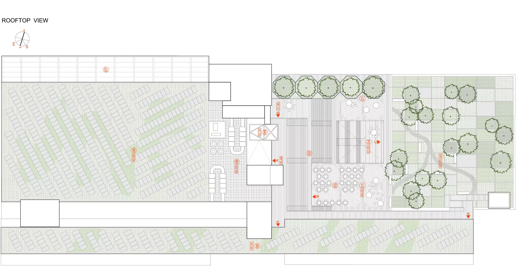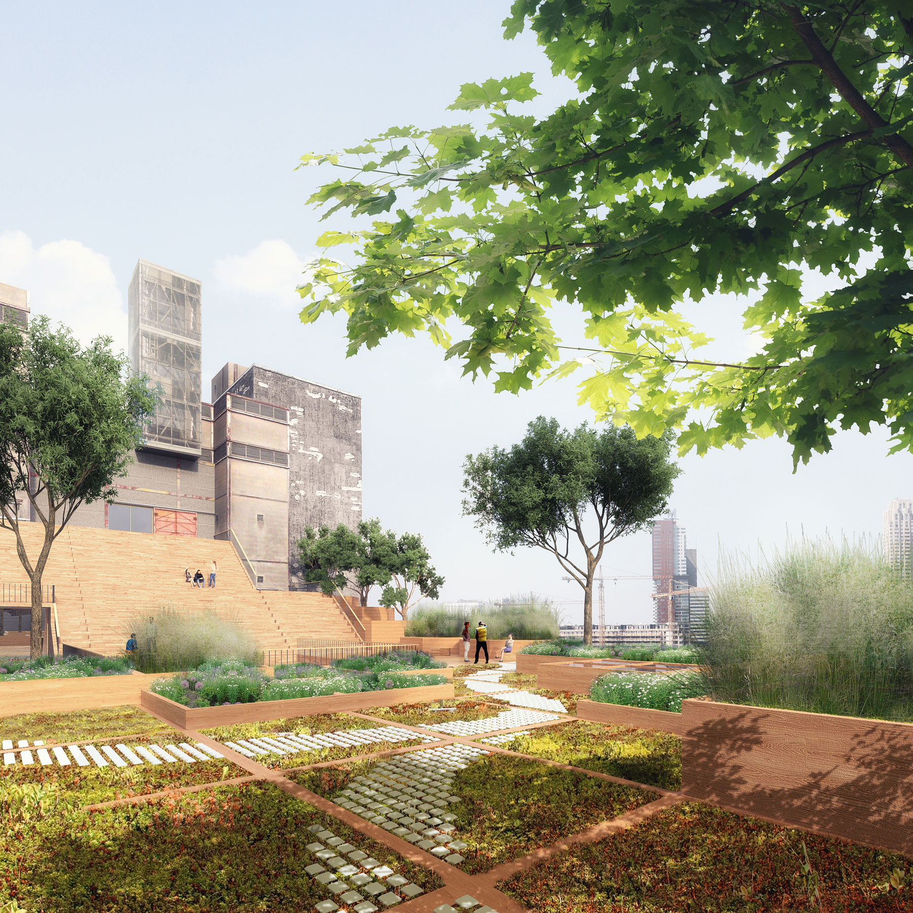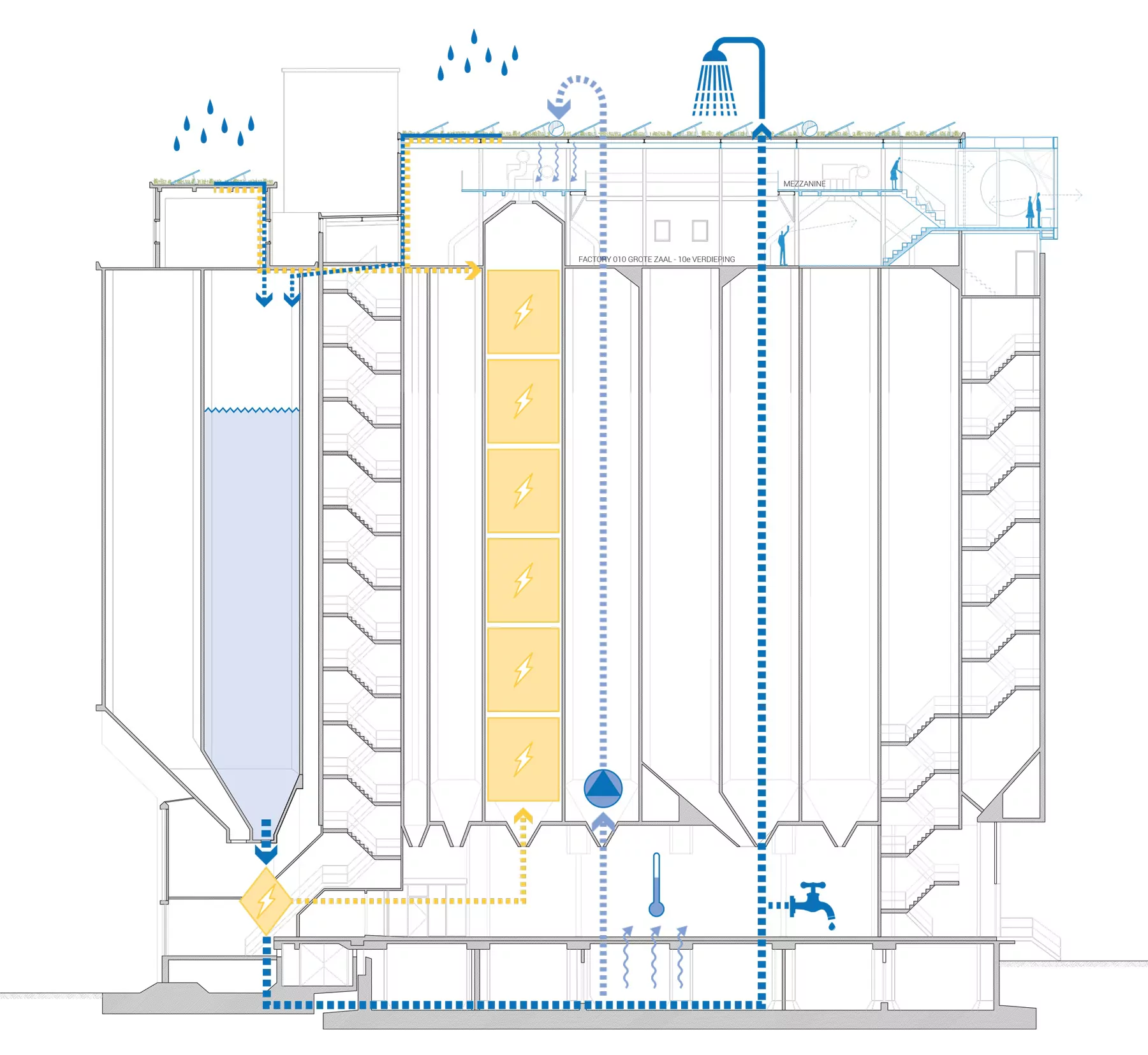 El proyecto se completa con un Parque Energético, una cubierta verde de 3.300 m² que crea un aislamiento natural para el edificio y sirve como alfombra fría para una gran instalación de paneles solares. Esta cubierta genera suficiente electricidad para cubrir la demanda eléctrica del edificio en caso de actividad normal y reactiva el silo que permanece inactivo desde los años 80. El espacio disponible de los silos se utiliza como almacenamiento de las baterías que almacenan la energía generada por los paneles solares. Además, con la combinación de techo verde más espacio de almacenamiento en los silos, el edificio está equipado con un sistema de absorción de tormentas para ayudar a la ciudad de Rotterdam a drenar las abundantes lluvias del clima holandés. Además, esta agua acumulada también puede producir energía al ser evacuada.